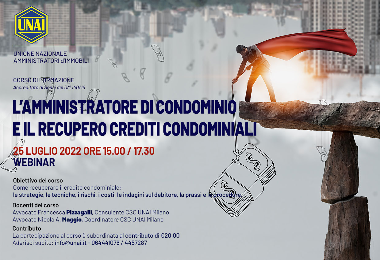 - evento UNAI – corso di formazione “l’amministratore di condominio e il recupero crediti condominiale” DM 140/2014 (25 luglio 2022)