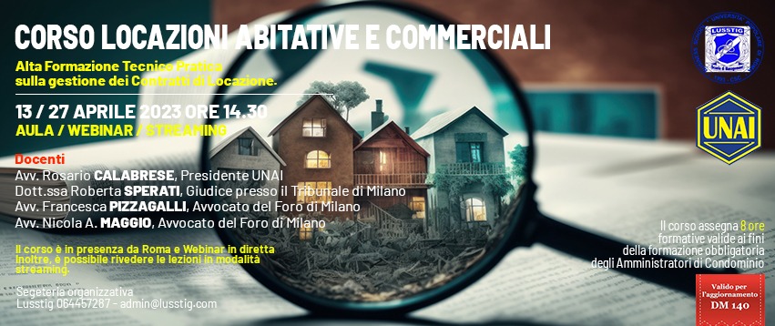 - evento UNAI – corso locazioni abitative e commerciali DM 140/2014 (13/27 Aprile 2023)