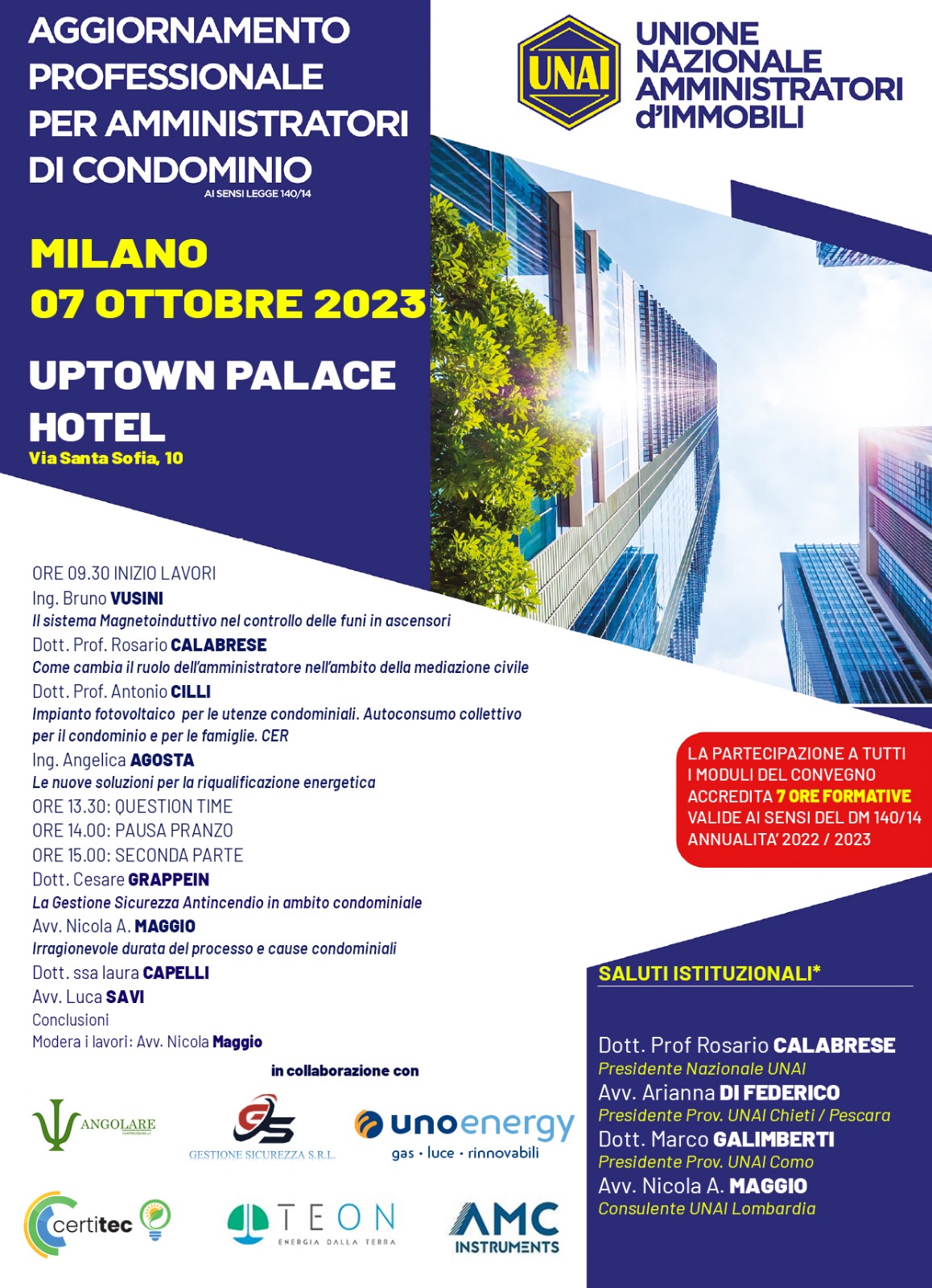 - evento UNAI “Efficientamento Energetico nei condòmini”- corso di aggiornamento per gli amministratori di condominio DM 140/2017 ( 7 – 9 – 15 – 17 febbraio 2024)