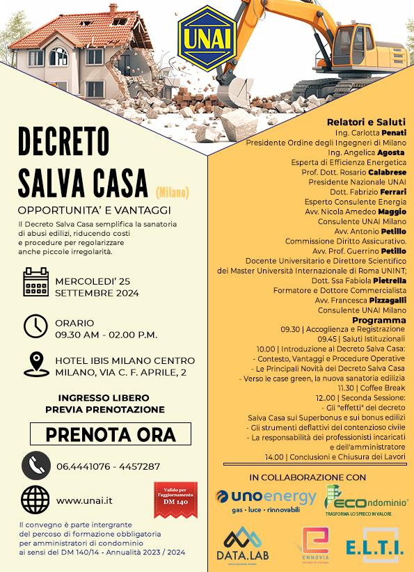 - evento UNAI “Decreto Salva Casa” – corso di aggiornamento per gli amministratori di condominio DM 140/27 (25 settembre 2024) – clicca qui per vedere le foto